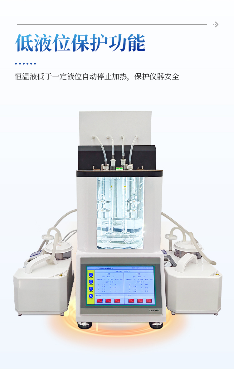 简要描述: 全自动运动粘度测定仪是按照GB/T265、ASTM D445的标准要求研制开发,用于测定液体、石油产品的运动粘度,结构设计精巧、美观、实用、操作舒适。一键快速恒温、油样上吸、粘度检测、粘度值计算、打印、粘度管清洗、烘干粘度管,不需要人工操作,仪器自动完成,一次可同时做2个样品的实验,提高工作效率;广泛应用于药典、石油、化工、科研、计量、商检、电力等部门。