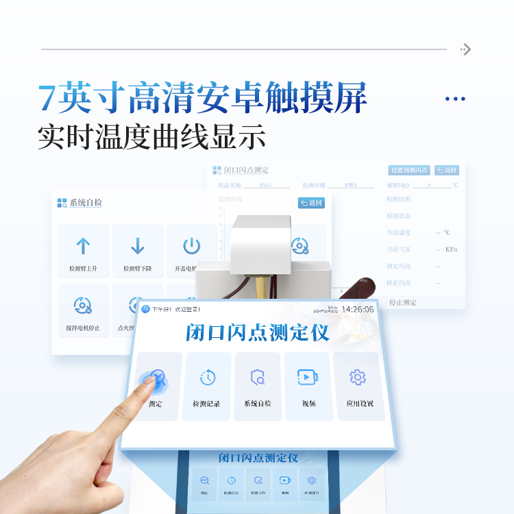 简要描述: 闭口闪点测定仪是一种专门用于测量石油产品、化学溶剂等易燃液体在密闭容器中,与空气形成可燃气体混合物后遇到火源时产生瞬间闪火的最低温度的仪器;广泛适用于电力、石油、化工、商检、科研等,以确保材料的安全储存、运输和使用。仪器按照GB/T 261-2021方法规定的升温曲线加热,温度接近预期闪点值时自动点火,当出现闪点时仪器自动锁定结果,并显示和打印,同时启动风机自动对加热器进行冷却。