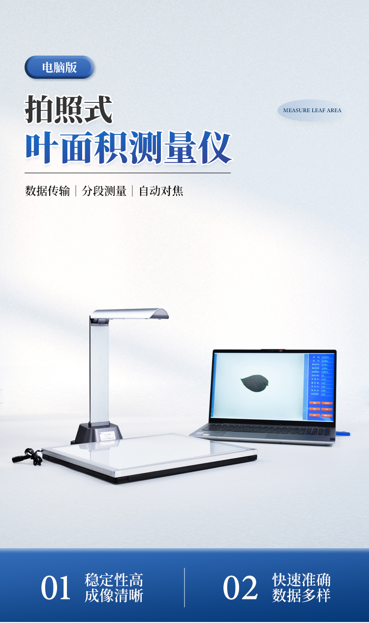 YMJ-P拍照式叶面积仪(电脑版)由图像采集设备和图像处理软件组成,采用本公司新开发的图像识别软件,根据叶片轮廓特征提取、图形实物转换、边缘检测等技术,能够形象并快速得到所测叶片面积、周长、虫洞数量等参数。相比传统的叶面积,具有测量更快速简便、结果更形象客观、数据多样并大大减少了人为操作带来的误差。