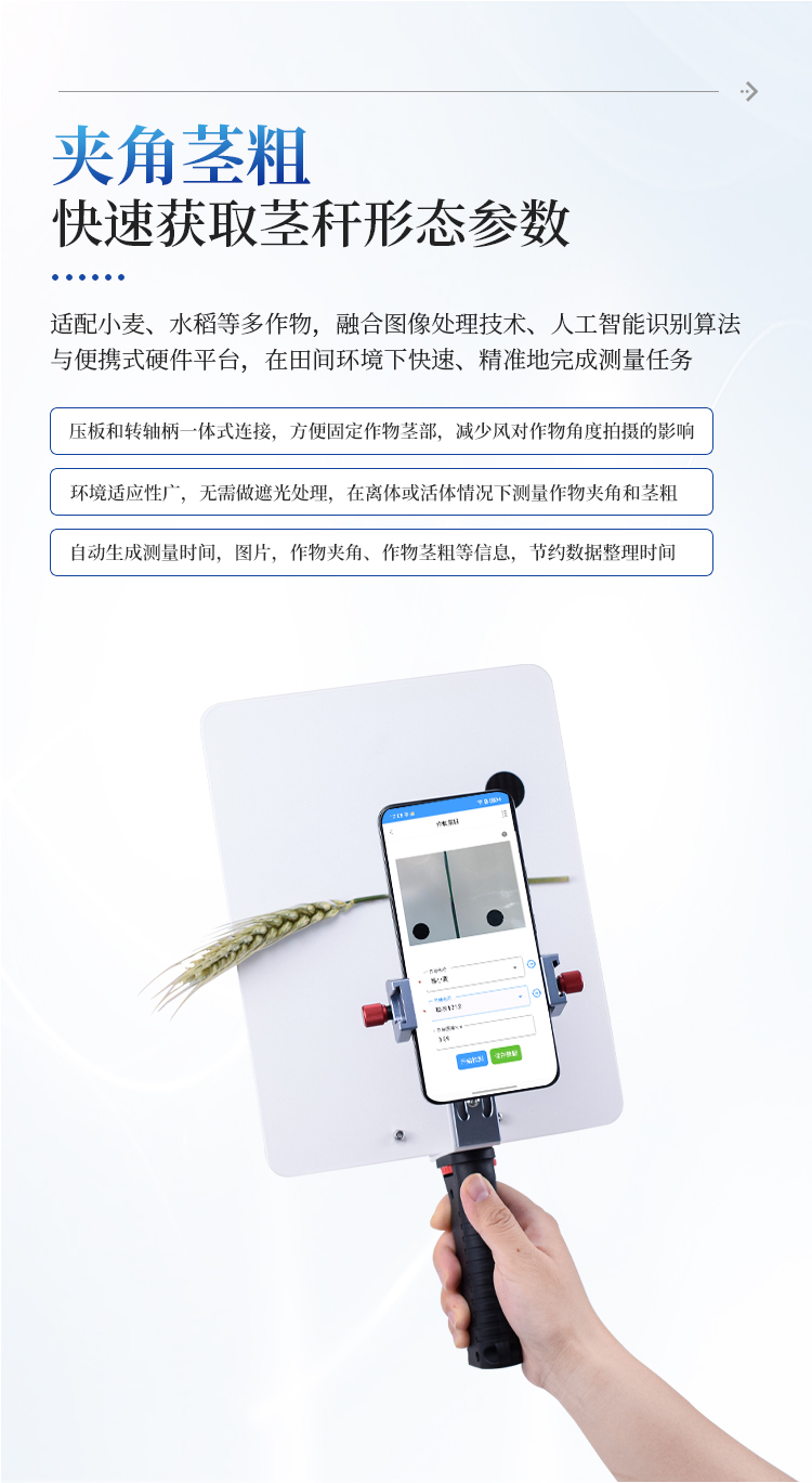 3)夹角茎粗测量仪适配小麦、水稻等多作物,快速获取茎秆形态参数;