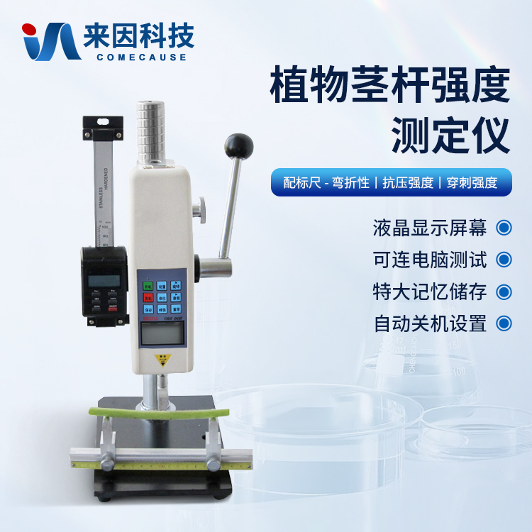植物茎秆的强度是决定作物抗倒伏能力的一个主要因素,长期以来玉米,高梁、烟草等的倒伏给作物的机械收割造成很大的困难。从机械化水平来说,造成大量的粮食浪费。另外,作物倒伏导致光照不充分,使其生产量受到极大的限制。在作物生长的各个阶段对其茎秆进行活体测量,进而根据茎杆纤维层的抗弯阻力与抗倒伏能力的相关性对群体测量数据进行统计处理,对作物的栽培和育种具有重要意义。植物茎秆强度仪采用拉压力传感器,通过针刺、压碎、折断的方式测出茎秆断裂或者屈服瞬间产生的最大力,即茎秆的强度。