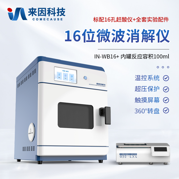 简要描述: 高压微波消解仪器IN-WB16+离子导电效应:溶液中的离子在微波电场下定向流动,产生高速摩擦和碰撞,将微波能转化为热能。微波消解技术的优势包括样品分解快速、完全,挥发性元素损失小,试剂消耗少,操作简单,处理效率高,污染小,空白低等特点,被誉为“绿色化学反应技术”。