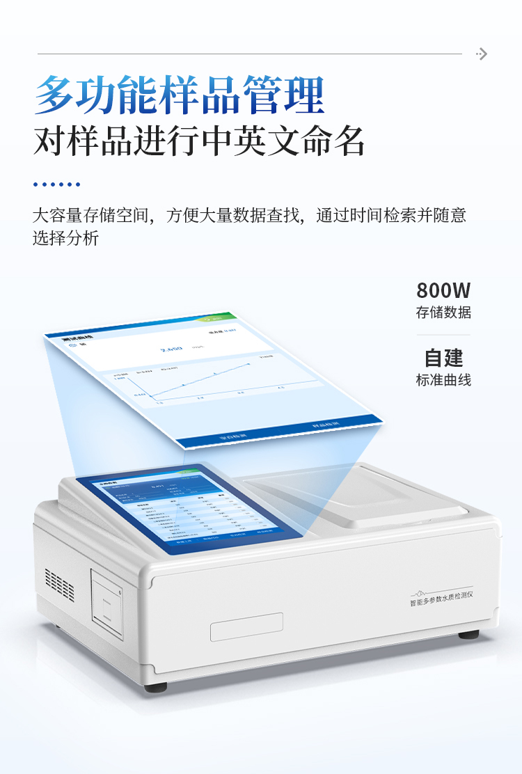 本仪器主要检测水中硫酸盐含量指标,兼具智能数据分析功能,图表、列表显示数据,分析一目了然;高清晰度彩色液晶触摸显示屏,Android智能操作系统,中文显示界面,中英文键盘,人性化操作,使用更简单。