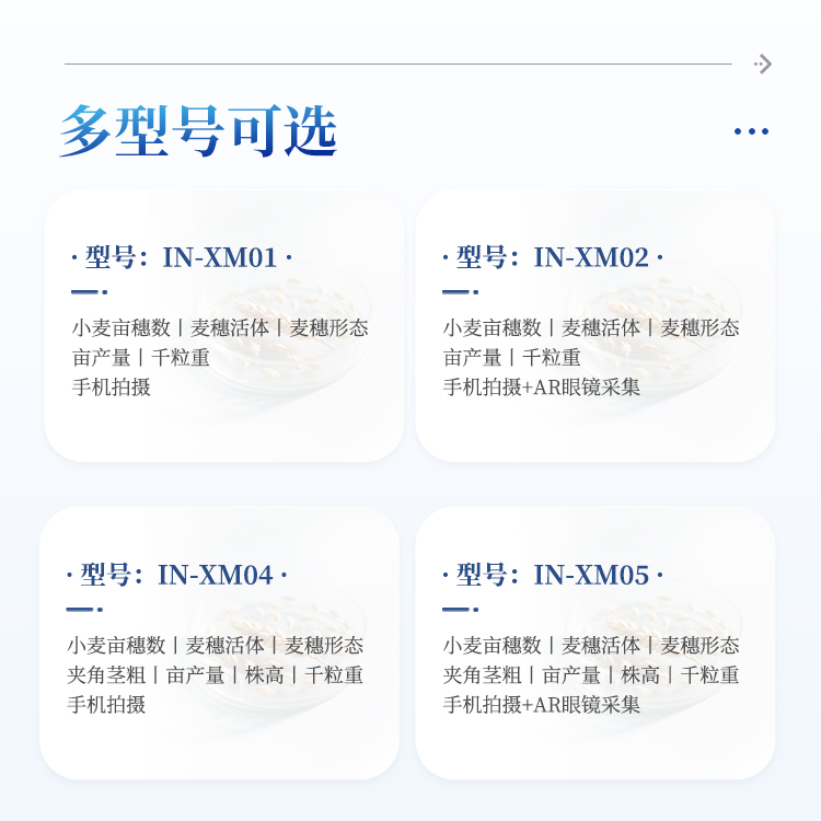 4)麦穗形态测定仪依托手机视觉技术,通过AI图像矫正算法一键获取穗长、小穗数等关键指标。全系统实现田间快速取样、批量分析及数据互联,为育种优化、产量预测和功能基因解析提供智能化解决方案。