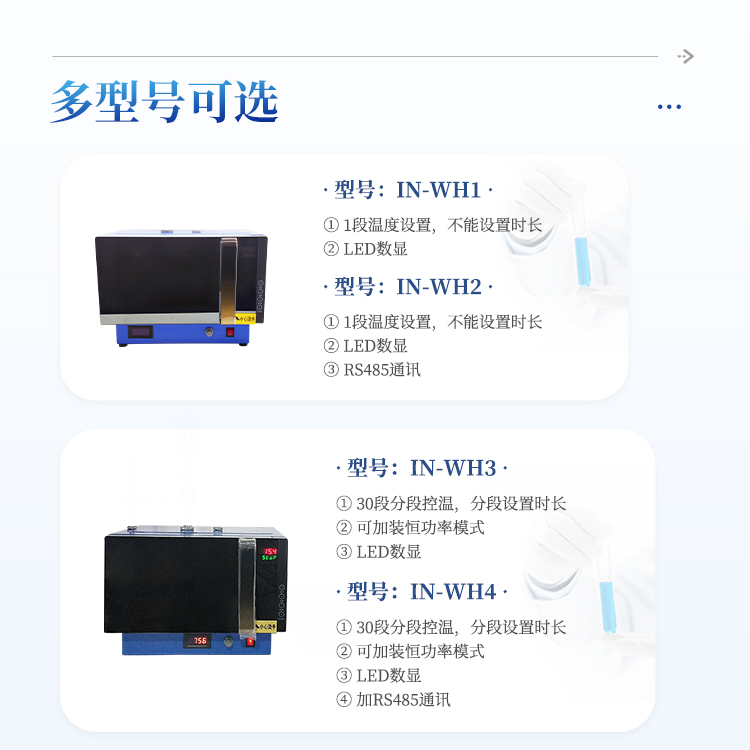 特 点 | 7寸液晶触摸屏;30段程序控温,实验数据、温度曲线等数据一目了然;恒温和恒功率模式,定值和程序模式,可切换使用 |