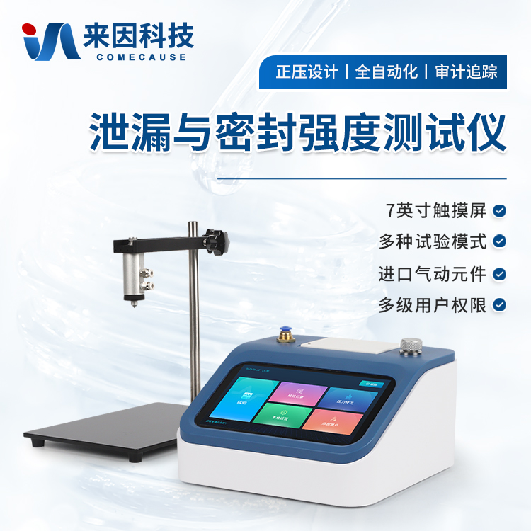 泄漏与密封强度测试仪,专业适用于各种热封、粘接工艺形成的软包装件、无菌包装件等各封边的封口强度、热封质量、以及整袋胀破压力、密封泄漏性能的量化测定;对软包装袋所使用材料的抗压强度、耐破强度等指标分析;各种塑料防盗瓶盖密封性能、瓶盖连接脱扣强度、材料的应力强度的量化测定;瓶体密封性、抗压性、耐破性等评估分析。通过正压法来进行测试,模拟实际使用环境下的密封强度、泄漏性能和耐压极限,为各行业的包装质量管控提供可靠的依据。