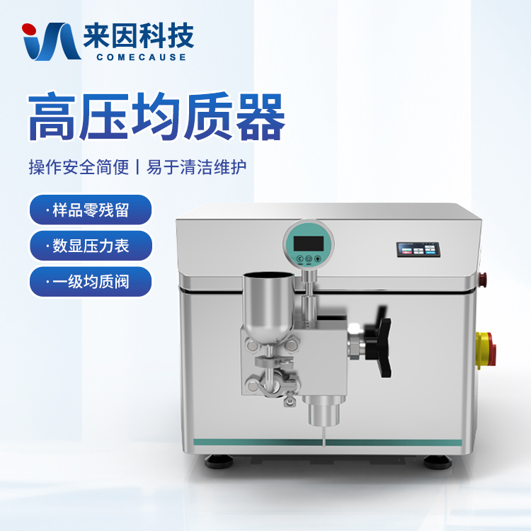 简要描述: 高压均质机是以高压往复泵为动力传递及物料输送机构,将物料输送至工作阀部分。物料在通过工作阀的过程中,在高压下产生强烈的剪切、撞击和空穴作用,从而使液态物质或以液体为载体的固体颗粒得到超微细化。样品残留量:样品零残留。流量控制可根据实验需求实时调节流量大小。