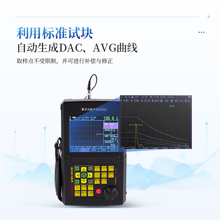 3、自动校准:一键式自动校准,操作便捷,自动测试探头的“零点”、“K值”、“前沿”及材料的“声速”;