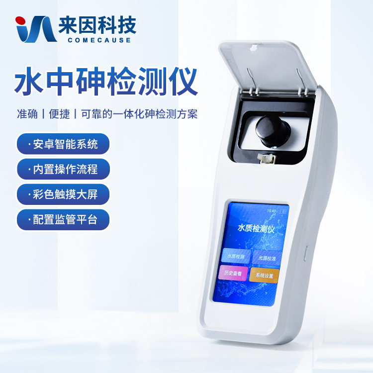 简要描述: 手持式水中砷检测仪是一款基于分光光度法原理研发的智能化水质总砷检测仪,专门用于饮用水、地表水、地下水及废水中总砷的快速定量分析。仪器采用高性能LED光源与大面积光电池,结合优化的硝酸银-聚乙烯醇吸收显色体系,确保了在420nm波长下检测的高灵敏度与稳定性。其搭载的Android智能操作系统,使操作直观流畅;具备万条数据存储、Wi-Fi/蓝牙传输及防水机身,非常适合实验室与现场检测场景。仪器支持多点标定与内置曲线,配合Type-C通用充电与长续航设计,为用户提供了准确、便捷、可靠的一体化砷检测解决方案。