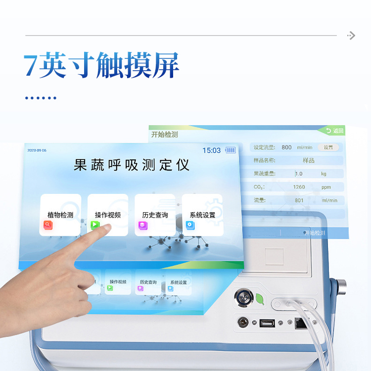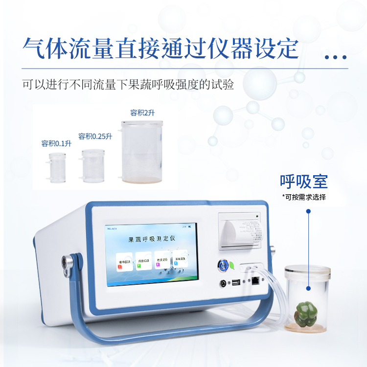 果蔬呼吸仪采用双波长红外二氧化碳分析器,7寸安卓显示器,专门用于常温、冷藏库、气调库、超市冷柜等储藏条件下的果品和蔬菜呼吸强度的测定和分析研究。